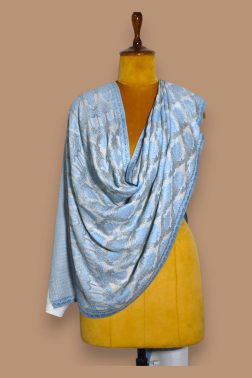 • Blue Silk Stripe Jama Stole with Paisley Border