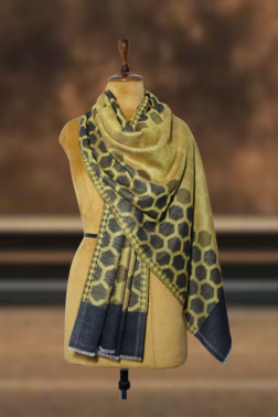 Golden Yellow Fish Bone Weave Stole with Brown Borders