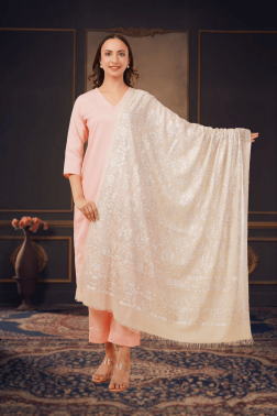 Tone-on-Tone Embroidered Oversized Pashmina Jama