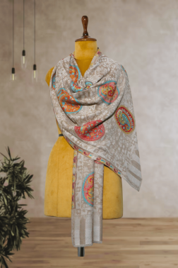 Grey & Gold Overall Jamawar Pure Pashmina Shawl with Paper Machie Embroidery Design