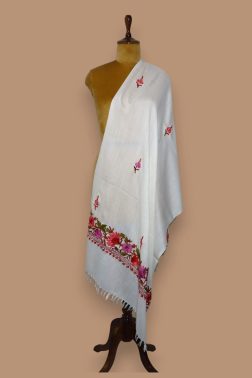 Maroon Kani Pashmina Shawl with Floral Outline Embroidery