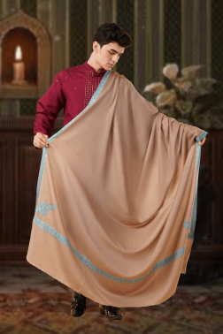 • Beige Haishidaar Pure Pashmina Shawl with Teal Hand Embroidery for Men