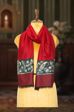 • Maroon Kani Pashmina Shawl with Floral Outline Embroidery