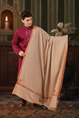 • Beige Haishidaar Pure Pashmina Shawl with Red & Orange Hand Embroidery for Men