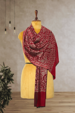 Maroon Kani Pashmina Shawl with Floral Outline Embroidery