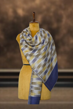 Infuse your style with vibrant artistic flair with our Ikkat Pashmina Stole, featuring a delightful Blue, Yellow & White Striped design.
