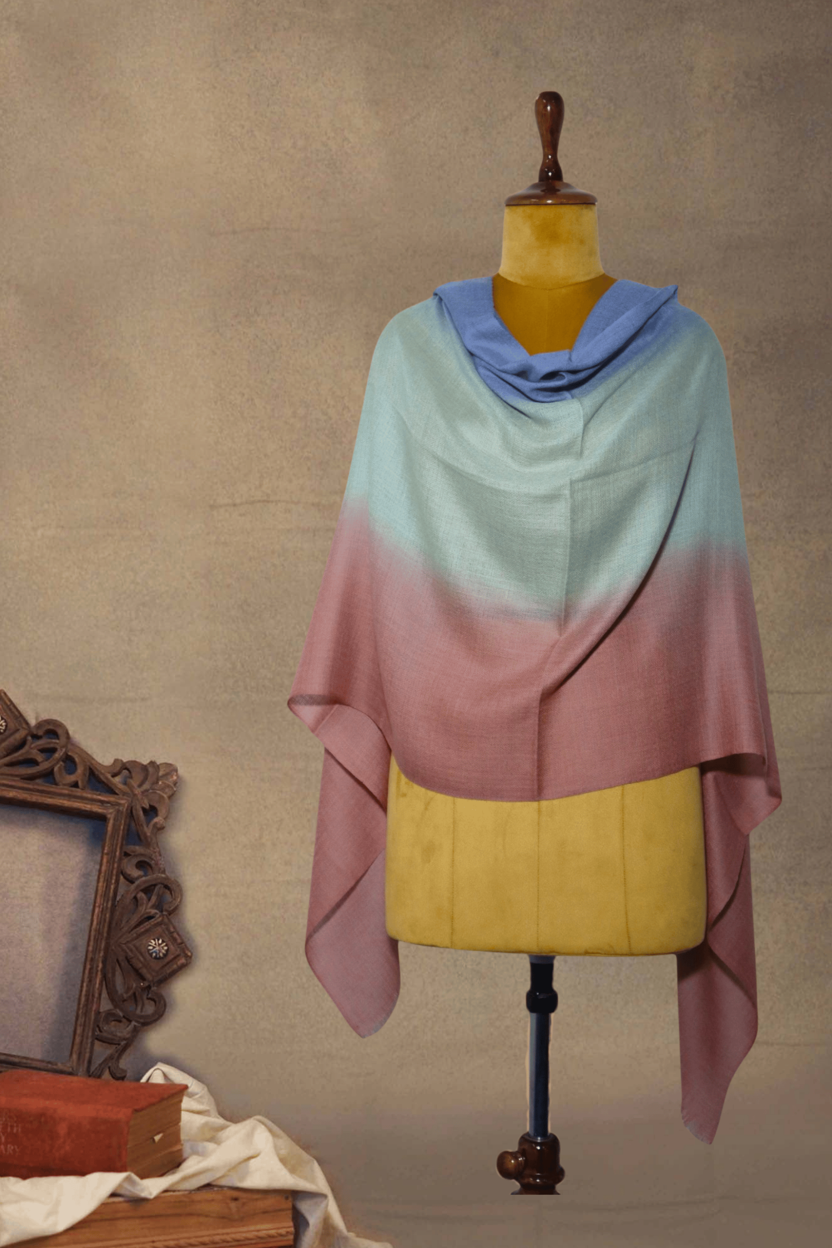 Description: Drift into a world of serene beauty with our captivating Ombre Stole. This exquisite accessory features a harmonious blend of three soft, graduated colors, designed to add an ethereal touch and luxurious warmth to any ensemble.