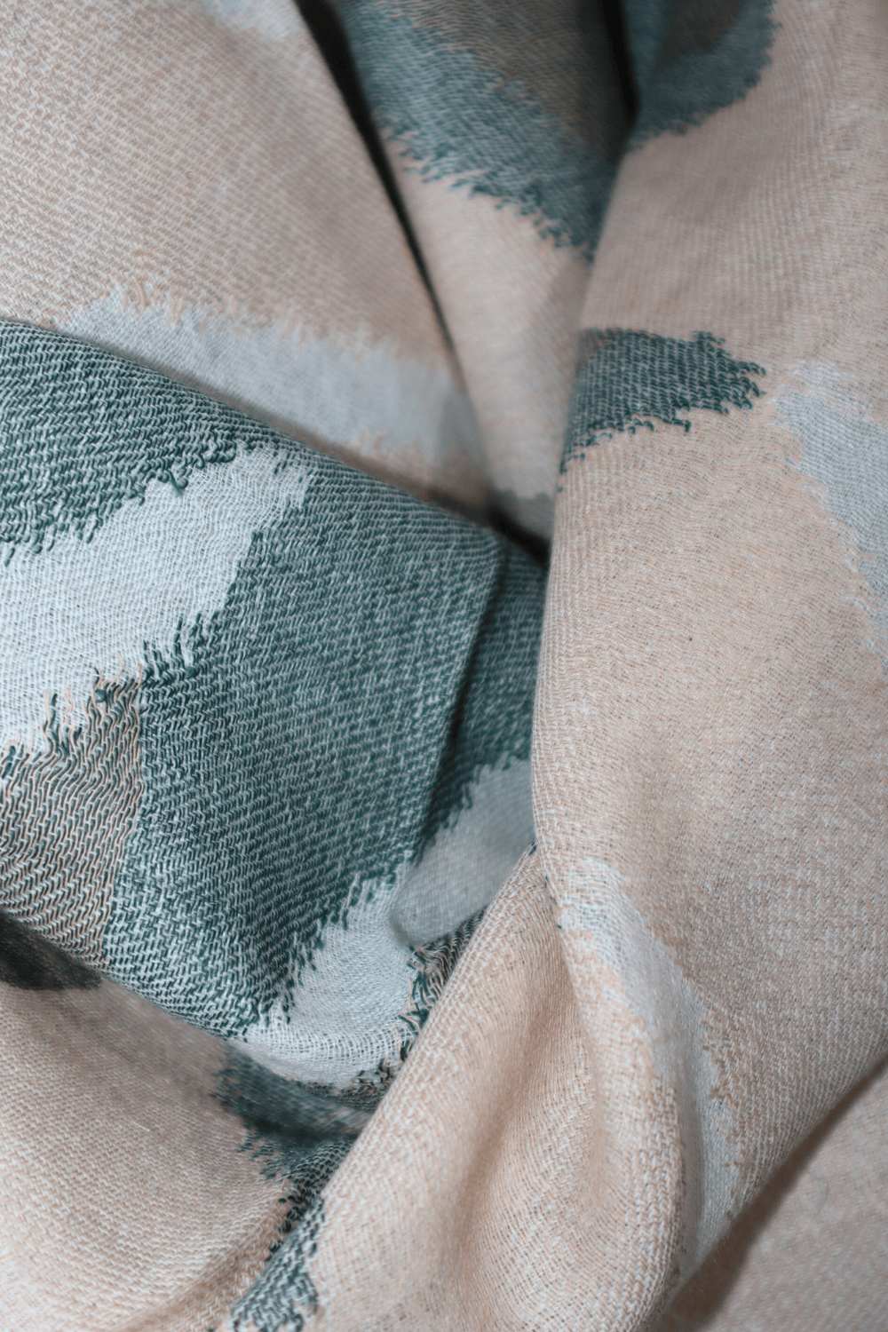 The calming color palette and organic design evoke a sense of tranquil natural beauty. Lightweight and exquisitely soft, it’s a versatile piece for effortless style and warmth.